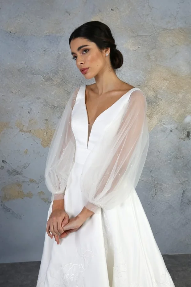 Full and fun billowing satin sleeves that are the perfect finishing touch to your bridal look. They have a full voluminous shape and elastic cuffs to the top and bottom to hold them in place. Available to order in UK Sizes 4-32. Available as pictured in Ivory only. £180