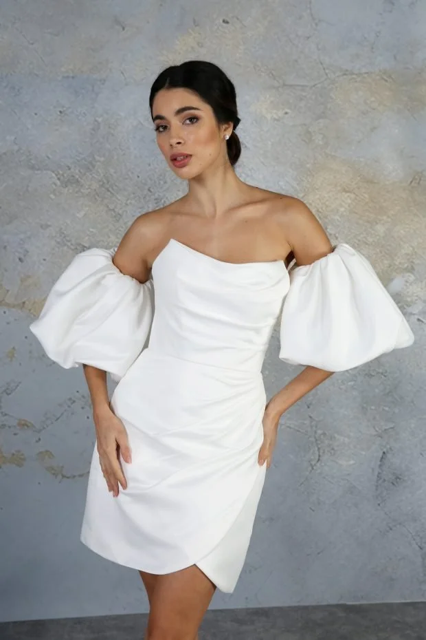 These matte satin puff sleeves are the cutest addition to your bridal look! They have a full voluminous shape and elastic cuffs to the top and bottom to hold them in place. Available to order in UK Sizes 4-32. Available as pictured in Ivory only. £120